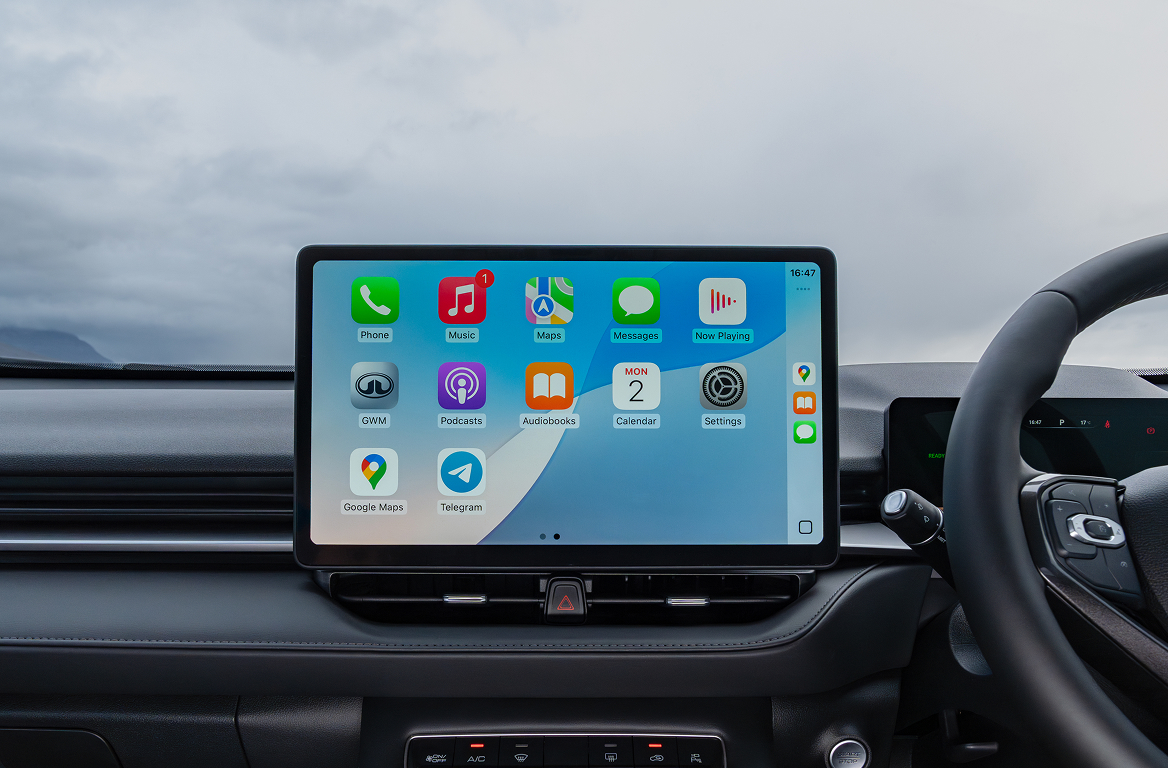 The new HAVAL H6 puts intelligence at your fingertips, now enhanced with voice command capabilities for effortless control. Its sleeker 14.6-inch touchscreen and smarter connectivity offer a seamless experience, while a thicker steering wheel improves grip for confident handling. With wireless charging and full integration with your phone, you stay connected, powered up, and in command — all with just your voice